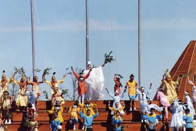 Согласно идее праздника, центральными персонажами национального праздника должны стать образы из традиционного мифологического мира Саха: 1. Урун Айыы Аар Тойон- творец- покровитель всего живого на Земле; 2. Ньургун Боотур- богатырь, герой, защитник людей;